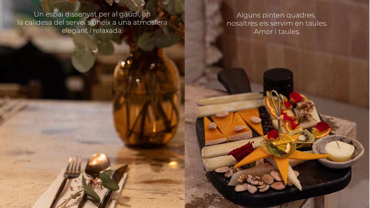 “Creo que cuando vienes a Cuadro tienes que probar los quesos, que es nuestro fuerte. Es lo que hacemos desde el principio y un buen queso artesanal hecho por un productor, no hay nada mejor”, afirma. Los quesos no son un simple complemento, sino un eje de la experiencia, junto con los vinos naturales, seleccionados para despertar curiosidad y acompañar la filosofía experimental del proyecto.